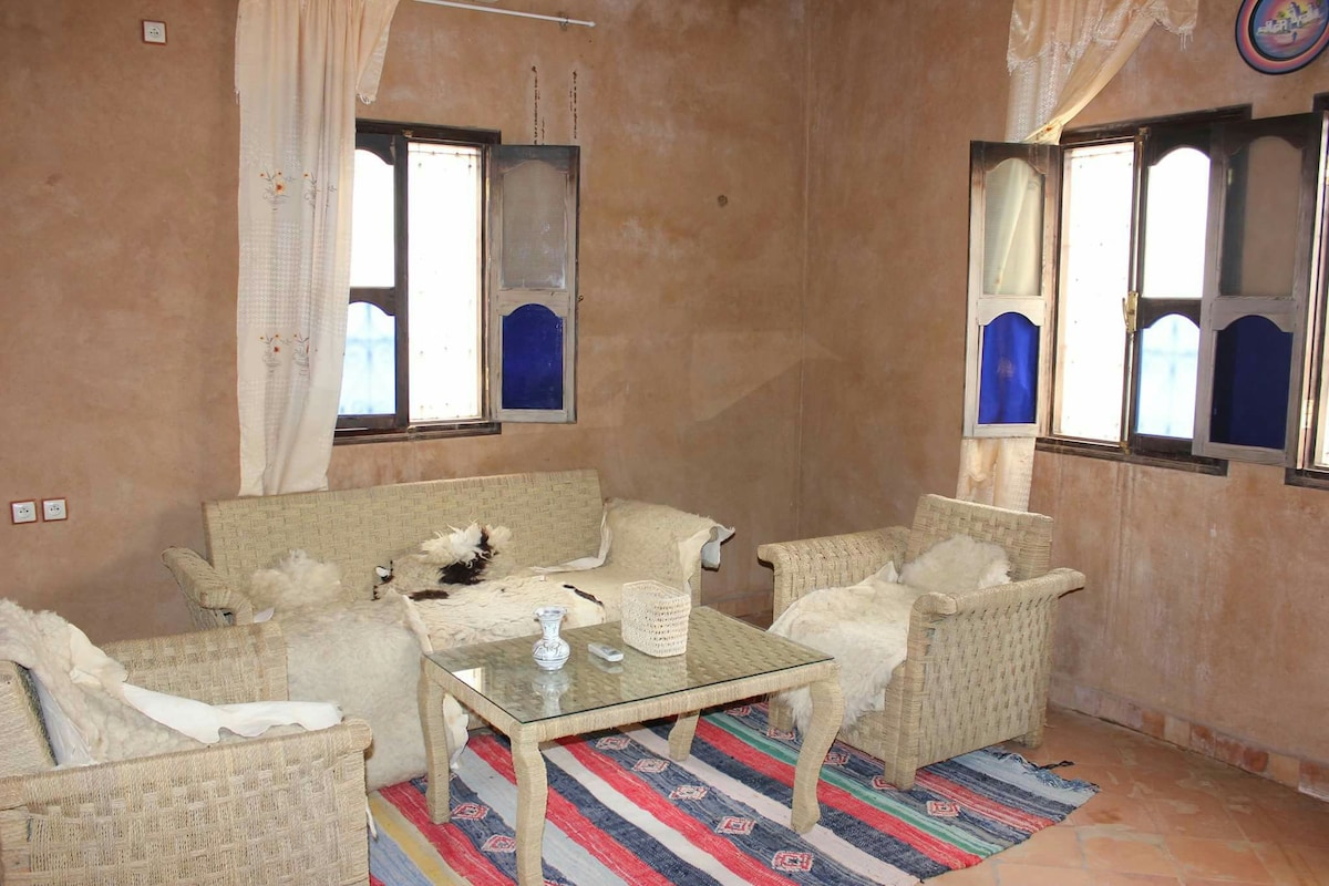 Stay in a traditional Earth house, constructed using natural materials, in a small village with the locals to experience authentic Moroccan living. Traditional breakfast will be provided along with lovely tea made with freshly picked mint. Myself Faysal or my family will be happy to be on hand to help make your trip special and memorable. Nestled between and in view of the Great Atlas and Anti Atlas Mountains and alongside our green and lush farm land.
