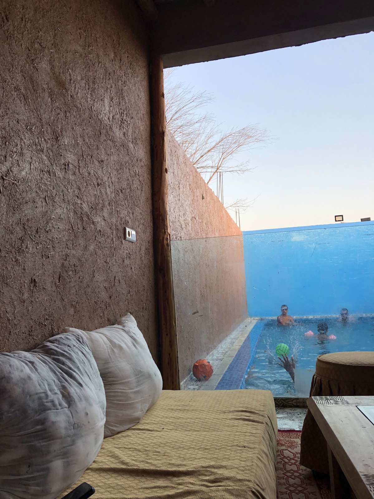 Notre riad "AL MAASSRA" vous invite au coeur d'un village typique, entouré de murs à l'abri des regards, construit sur un ancien moulin à olives. Doté d'un jardin ombragé et arboré, avec une fontaine, un hammam et une piscine sans vis-à-vis avec des bains de soleil... Plusieurs espaces de vie et de repos sont à votre disposition dont un coin repas sous une pergola, un salon atypique avec son moulin et sa cheminée, un salon contemporain... Les 4 chambres sont climatisées. Barbecue à disposition