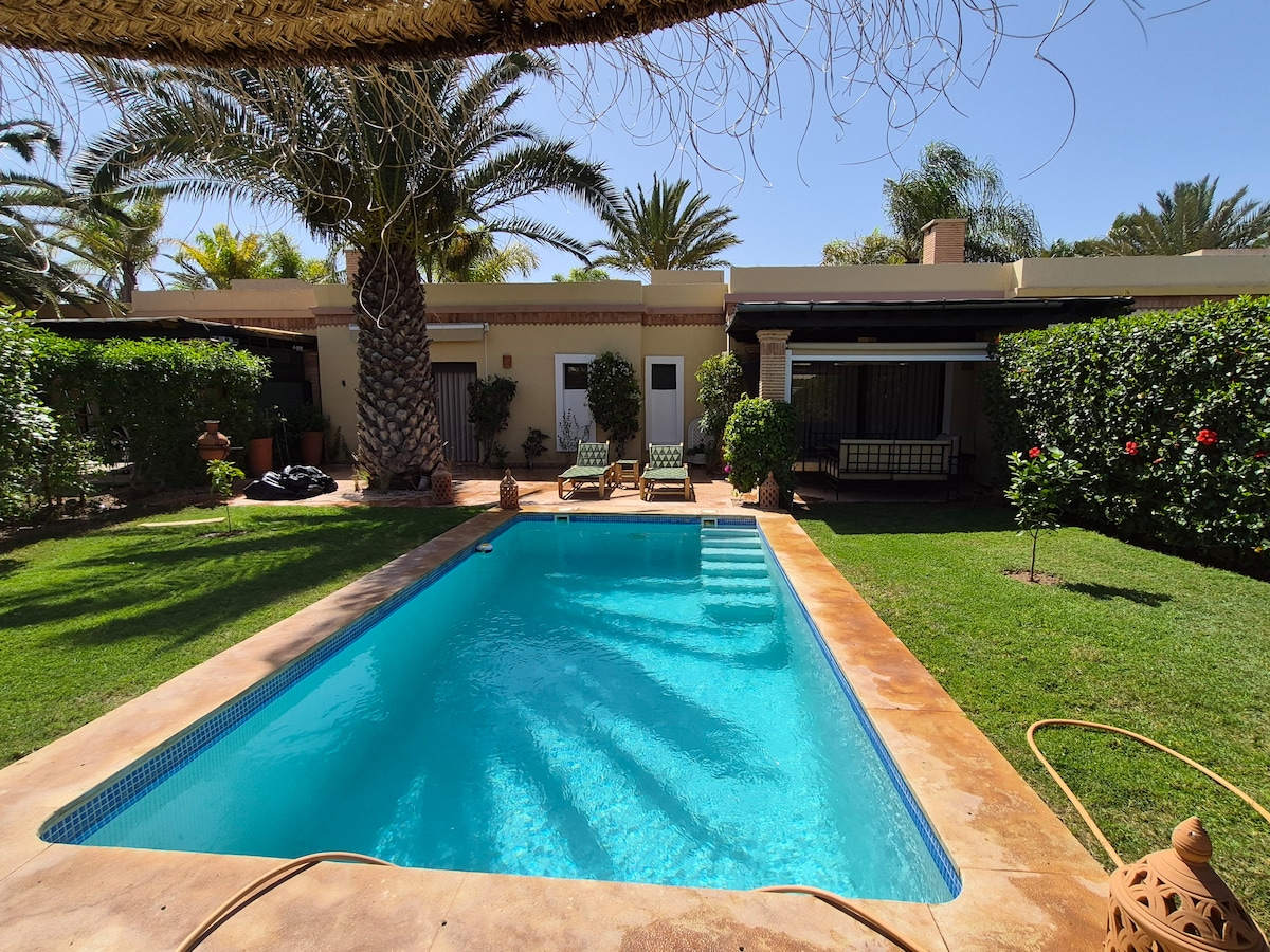 Magnifique Villa à louer avec piscine sans vis à vis à l'Orangeraie de Dyar Shemsi. 3 pièces : Salon, cuisine ouverte, deux chambres, salle de bain, patio, deux terrasses, grand jardin. La villa se situe dans un domaine sécurisé à 35 minutes d’Agadir ! Dispo dans la résidence : - Salle de sport - Terrain de tennis - Pratice de golf - Table de ping-pong - Piscine commune - Salon de beauté - Épicerie - Bibliothèque - Plusieurs lacs - Promenade - Service Gratuit golfette