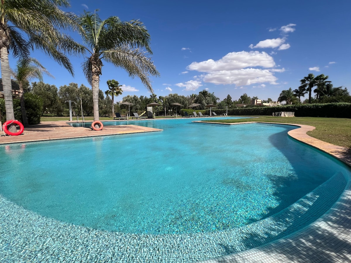 Ce logement paisible offre un séjour détente pour toute la famille Piscine privée sans vis à vis , entouré d’un splendide espace vert , jardin 350m2 vêtu de Palmier et d’oranger Situé 30min Agadir Dans un domaine très paisible et sécurisé 24h/24h avec un service Golfette pour vos déplacements dans le domaine Parking Privée gratuit Terrain de golf , tennis et une salle de fitness disponible Une très grande piscine commune aussi disponible dans le domaine