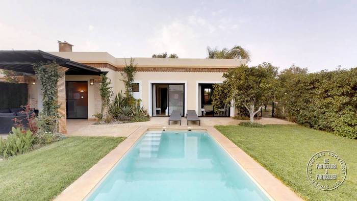 Magnifique Villa à louer avec piscine sans vis à vis à l'Orangeraie de Dyar Shemsi. 3 pièces : Salon, cuisine ouverte, deux chambres, salle de bain, patio, deux terrasses, grand jardin. La villa se situe dans un domaine sécurisé à 35 minutes d’Agadir ! Dispo dans la résidence : - Salle de sport - Terrain de tennis - Pratice de golf - Table de ping-pong - Piscine commune - Salon de beauté - Épicerie - Bibliothèque - Plusieurs lacs - Promenade - Service Gratuit golfette