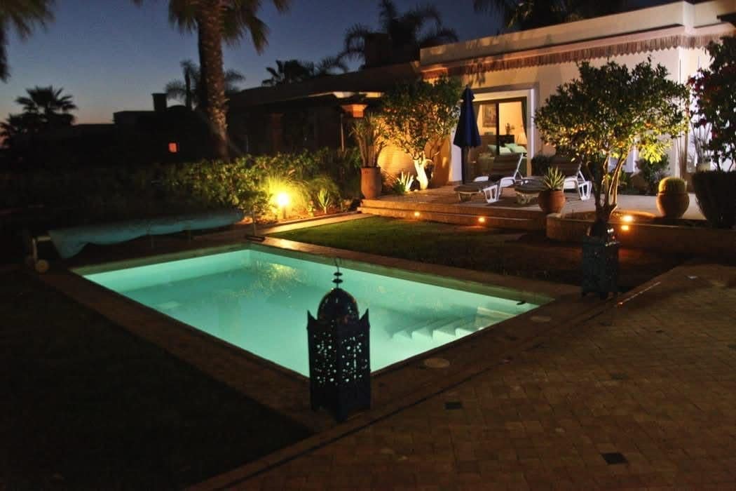 Très belle villa de 120m2 sur terrain de 550m2 comprenant 2 chambres, 2 salles de bain,grand jardin clos sans vis-à-vis, piscine privée de 4*8m vaste terrasse couverte. Patio. Vous profiterez d’un équipement complet, cuisine avec micro-onde, four, lave-vaisselle. La villa dispose du wifi, lave-linge et tout ce dont vous aurez besoin pour des vacances parfaites. Située dans le domaine sécurisé Dyar Shemsi, vous pourrez profiter d’un parking commun, piscine commune de 300m2, salle de sport, etc.