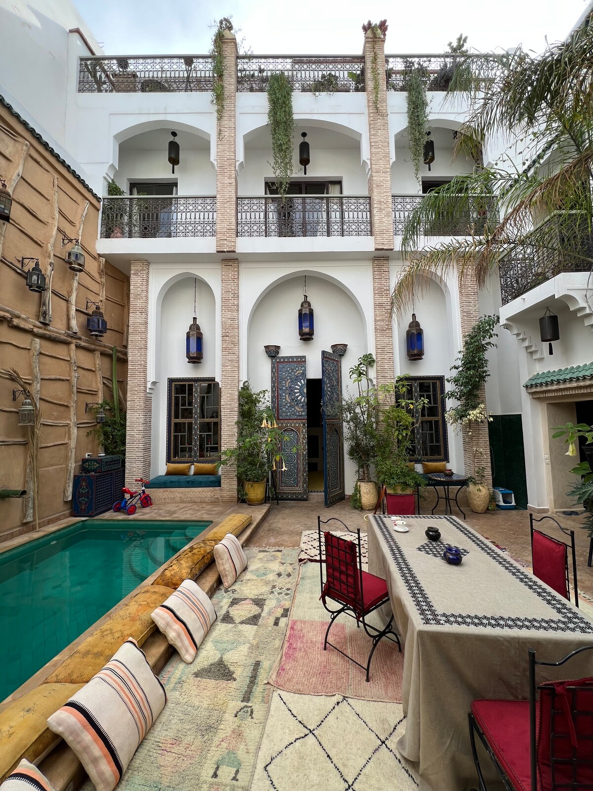非典型的摩洛哥传统庭院,游泳池,无人窥视