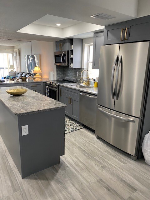 Welcome to the newly remodeled condo in the Heart of Treasure Island. This bright and modern retreat is perfect for relaxing and avoiding the crowds. Perfect location for beach lovers and wildlife watchers alike with waterfront views of the canal from the living room, kitchen and bedroom windows and beautiful sunsets. Just 2 blocks or a 5 minute walk to the beautiful white sandy beach and a few feet from the canal and heated pool. Visit nearby restaurants, John's Pass Boardwalk and live music.