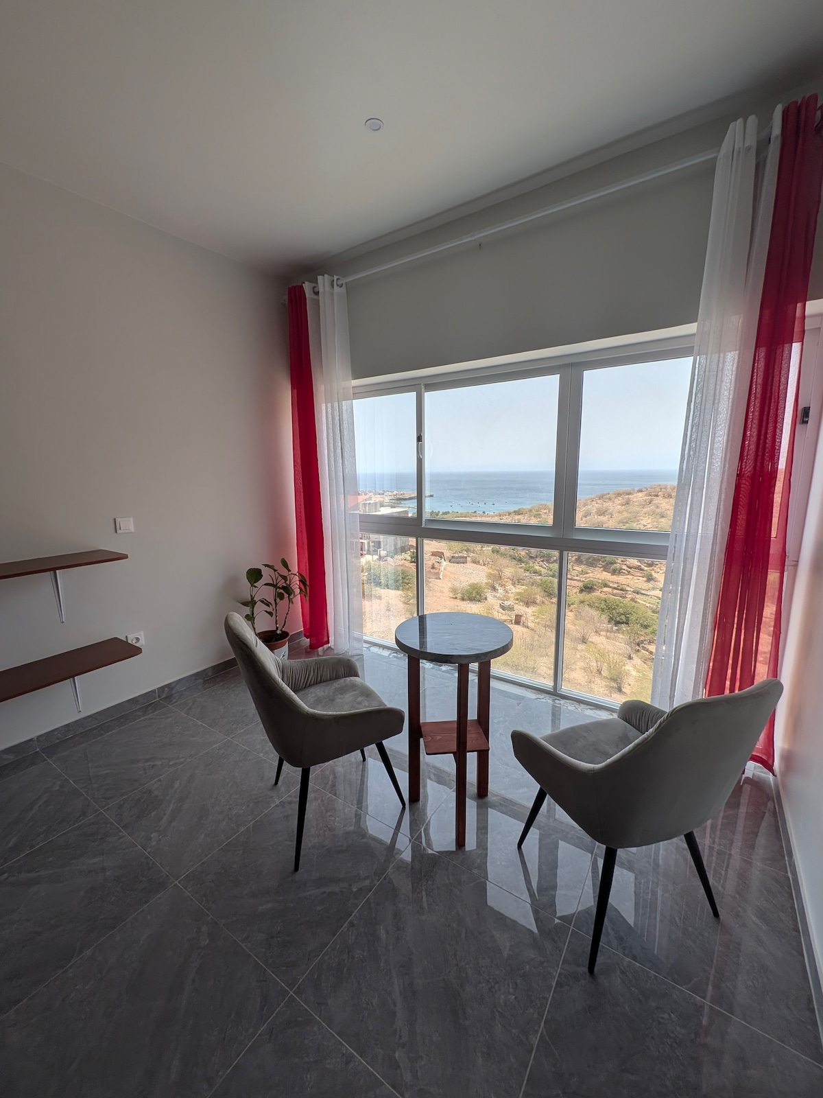 Sur la superbe côte de Tarrafal, nous vous proposons une chambre dans un appartement entièrement équipé. Choisissez celle qui vous convient, nous fermons les autres. Le prix affiché est pour une chambre avec 1 lit double. En réservant un appartement, le tarif dépend du nombre de chambres (T2, T3 ou T4). Nous attribuons automatiquement 2 personnes par chambre. Par exemple, une réservation pour 4 personnes est un appartement T2 avec 2 chambres doubles.