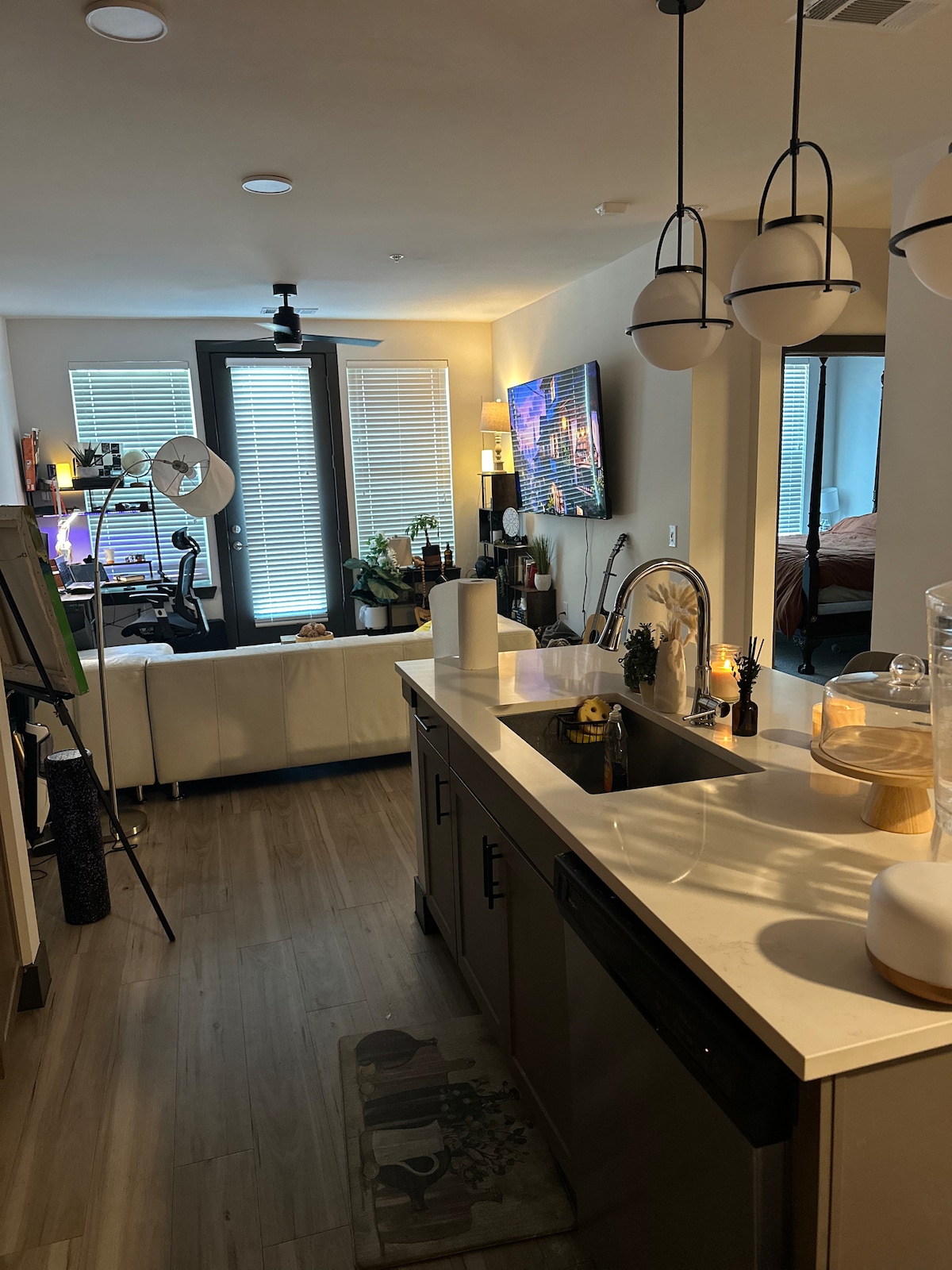This custom modern house was built in 2018 and has nearly 40 photographs from local artists. Each photo has a description written by the artist and provides a truly unique experience for those looking for a hotel quality stay with charm. The floor plan is open and the decor is minimalistic with no clutter but has everything you need. Great business travelers and families with and office, stroller, high chair and car seat. Smart TVs in all bedrooms, internet is 1Gbps