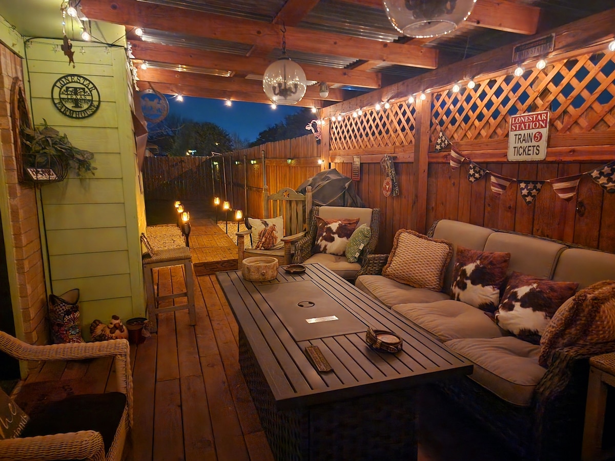 Yee-Haw.....this unique Cowboy home has a charm all its own. It has been renovated using Western décor, so it is fun, quirky and very Texas! It's perfect for the working executive with a large, dedicated desk and plenty of room for working from your home from home. The master bedroom has a cowboy theme, and the guest room honors America’s rich Native American Heritage. This property is infused with a “Home on the Ranch" chic vibe that makes visiting a truly Texas experience all to itself.
