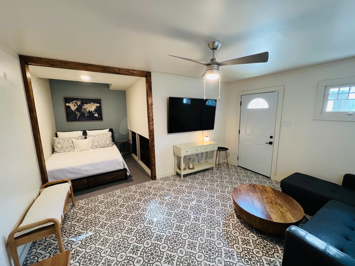 We are located in the historic Fairmount neighborhood, just a 10 minute walk from Magnolia. The space is a modern, newly built, above-garage studio apartment with vaulted ceilings, full kitchen, dining area, patio, entertainment center, queen sized bed, and bathroom with walk-in shower. It is full of amenities such as dedicated wifi gateway, access to live TV/streaming services, Leesa mattress, premium coffee, and much more! Our goal is for you to feel comfortable and at home during your stay!