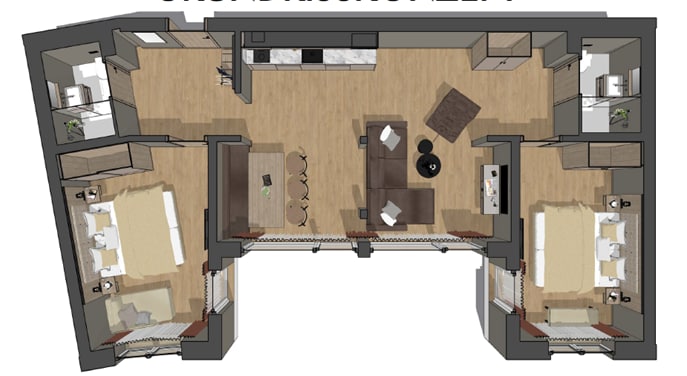 Mit 50-60 m² sind die Standard Maximilian Appartements unsere kleinste Kategorie mit einer voll ausgestatteten Wohnküche, ein gemütliches Sofa mit Schlaffunktion und ein zusätzlicher Loungesessel zum Entspannen. Ein gemütliches Schlafzimmer mit Boxspringbett und ein geräumiges Bad mit begehbarer Regendusche runden den Wohlfühlfaktor ab. Die Appartements sind in verschiedenen Ausführungen und Ausrichtungen (Süd, West oder Nord) verfügbar und auf Anfrage auch zur Einzelbenutzung möglich.