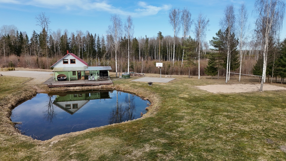 3 magamistoaga maja koos kümblustünni, aurusauna, tavalise saunaga. Vaikne piirkond. 10 minuti autosõidu kaugusel Tartu kesklinnast. Majas on olemas saunarätikud 12-le. Kohvimasin täidetud ubadega. Nõud on 20-le inimesele. Väliköök, kus on grillimiseks kõik vajalikud tarvikud. Suitsuahi, bbq ahi ja tavaline grill. Olemas on korvpalli-, jalgpalli ja võrkpalliväljak(pallid on ka olemas). Mõnus lõkke tegemise koht. Metsas on matkarada. Maja küljel paikneb väike tiik, kus saab ujumas käia.
