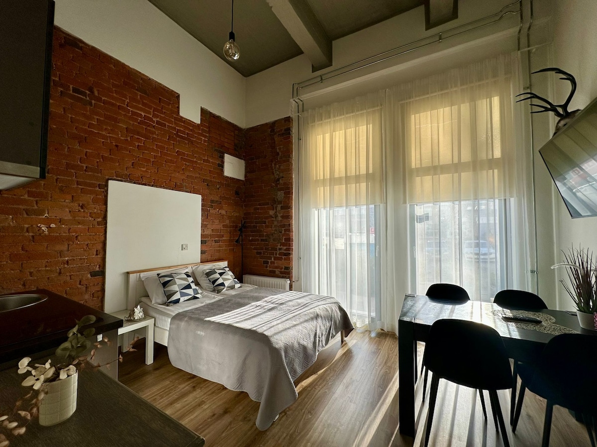 Stylish loft in Tartu Old Town with high ceilings, free high-speed Wi-Fi, kitchenette, Telia TV Premium, and contactless smart lock entry. Enjoy a 24/7 gym, sun terrace, laundry room with dryers, elevator access, and free private parking (space No. 8). A cozy bakery and café are on the ground floor. Top sights, restaurants, and shops are all within walking distance. Allergy-free apartment.