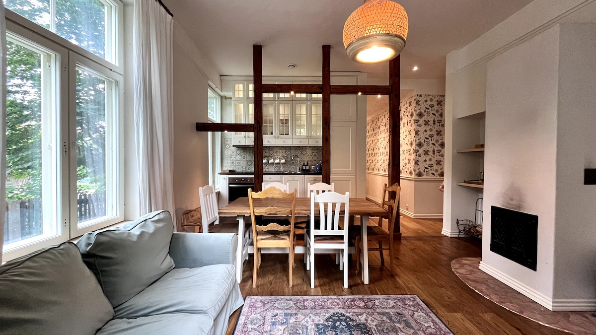 Welcome to your perfect home away from home in the heart of Tartu! This charming apartment is the ideal base for exploring everything this vibrant city offers. Nestled in the quiet and green Supilinn neighborhood, this family-friendly apartment is situated in a wooden house built around 1890. It has been lovingly decorated with a mix of classic and modern elements, offering a comfortable retreat that's perfect for families, couples, or solo travelers.