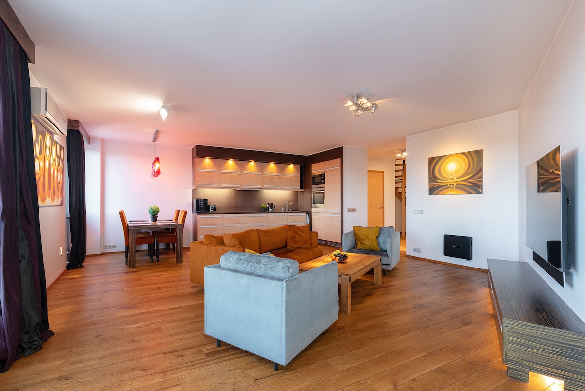 105 m2 apartment across two floors- right in the middle of town. You've got a balcony with an awesome view of the city and the town hall square. And guess what? There's a steam sauna inside! This place is super comfy and modern. Plus, it's right in the heart of everything—the coolest spots in town are just around the corner. Come stay here and have the best city adventure ever! CHECK IN 16:00 CHECK OUT 13:00