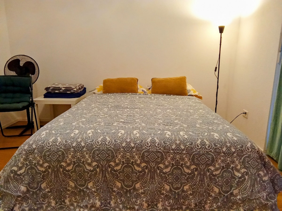 Charmant studio indépendant avec Kitchenette au calme à 5 min de Crans-Montana - 15 min de Sierre - 20 min de Sion. Studio situé au rez-de-chaussée du chalet avec salle de bain privative, cuisinette, parking privé et une petite place à l'extérieur avec mobilier de jardin. Parking gratuit privé Wifi Smart TV 49" Plaque de cuisson Réfrigérateur Machine à café Four à Micro-ondes Bouilloire Sèche cheveux Serviettes de bains Produits de toilette Arrêt de bus à 2 min à pied