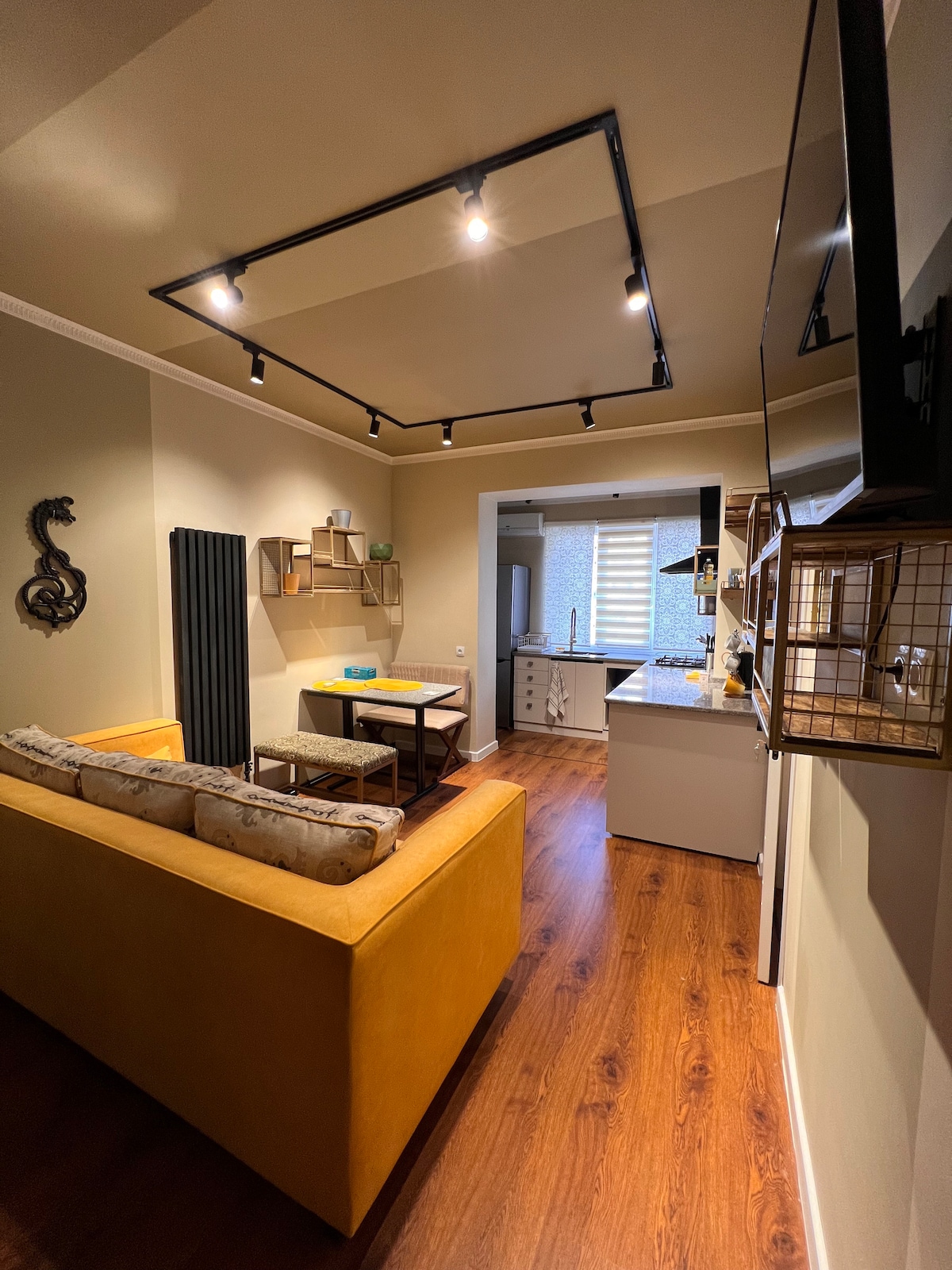 Fast WLAN,AC included. Fully equipped with all necessary appliances.Cosy bed with a width of 1.65 m, ideal for one person and suitable for a small family.New building with lift and guarded courtyard. The flat is in an excellent location, only 15-20 minutes by taxi from the city centre. In the immediate vicinity you will find:Supermarkets, Sushi bar,pizzeria,Restaurants with national cuisine,Alcohol shops.