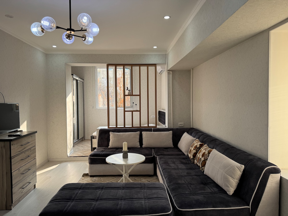 Стильное и уникальное жилье в центре Ташкента. Отличная локация, в пешей доступности метро, рынки, супермаркеты, рестораны, бары, парки и много развлекательных мест, жилье находится недалеко от многих достопримечательностей города. Пройдя пешком вы можете попробовать самую вкусную узбекскую самсу и плов в кафе "Минор сомса". Также, рядом много ресторанов с европейской, паназиатской и турецкой кухнями. Имеется все для комфортного проживания (кондиционер, Wi-Fi , посудомоечная и стиральная машины.