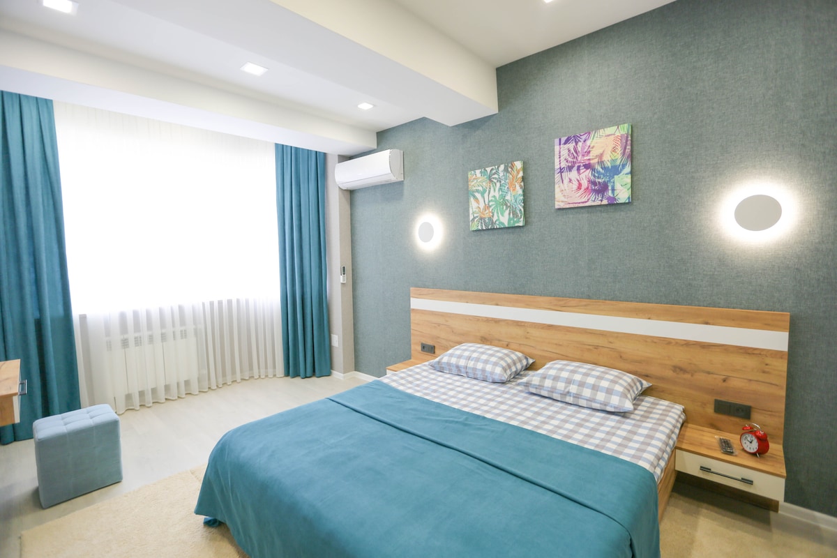 The apartment is located in the center of the city right across National Library of Uzbekistan in honor of Alisher Navoi. The apartment includes all the necessary utilities and accessories needed to brighten you stay in our beautiful city. It includes: WI-FI, conditioner, fully equipped kitchen, washing machine, iron and ironing board, etc.