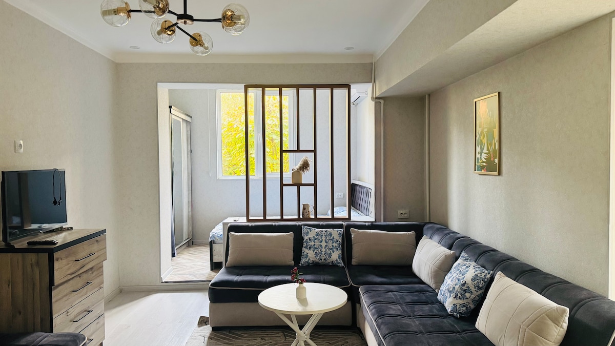 Please note: the apartment is not available for photo or video shoots. Welcome to a cozy and stylish 30 m² studio, once the art workshop of painter Gayrat Baymatov. The apartment is located in a truly unique building, where artists still live and create on every floor. Within just a 5-minute walk you’ll find: • Buyuk Ipak Yuli Metro Station • A local bazaar with fresh fruits, vegetables, and family-run cafés • “Belissimo” pizzeria • “Breadly” serving delicious breakfasts