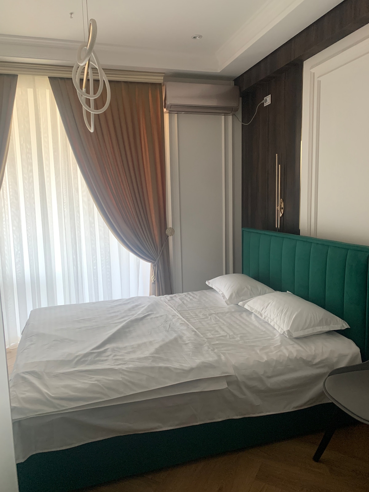Стильная студия в новом здании Prestige Gardens, расположена в 5 минутах езды от аэропорта и Южного вокзала. - 1 двуспальная кровать - 1 раскладной диван - Свежий ремонт - Есть все для комфортного проживания: - WIFI, Smart TV -Холодильник, стиральная машина - Оборудованная кухня - Кондиционер, утюг, фен - Бесплатная парковка возле здания - Станция для зарядки электромобиля - Удобное расположение, до центра города 10 минут езды - Наличие ресторанов и супермаркетов поблизости