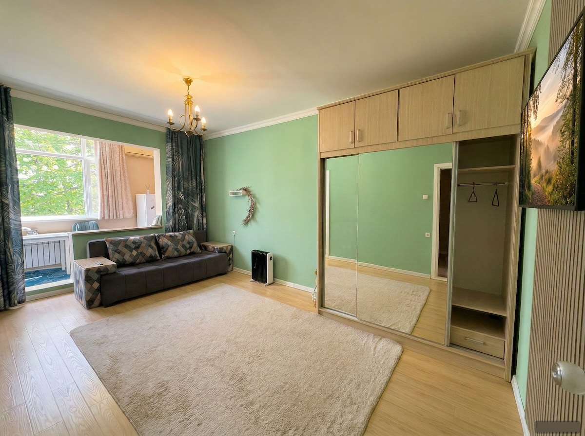 Абсолютно новые и уютные аппартаменты, для спокойного отдыха. @gafurovana. Находится в центре Ташкента, недалеко от международного аэропорта. Самый востребованный район для иностранных гостей, так как в шаговой доступности имеются много ресторанов с различными национальным кухнями. Много мест для развлечения, рынки и прогулочные зоны, парки и т.д. В квартире имеется все необходимое, для комфортного проживания. Имеется спальня с двухместной кроватью и раскладной диван (полноценный двухместный).