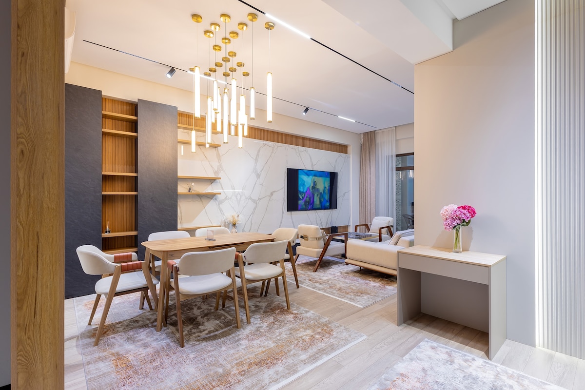 Welcome to a stylish and cozy apartment in the prestigious Parkwood residential complex with its own green park, located in the heart of Tashkent. A spacious terrace for morning coffee and relaxation. Heated floors, air conditioning, Wi-Fi, 2 TVs, dishwasher, and washing machine—everything you need for a comfortable stay. All necessary amenities are within walking distance. The apartment is ideal for both business trips and vacations. Book your corner of nature in the center of the capital!