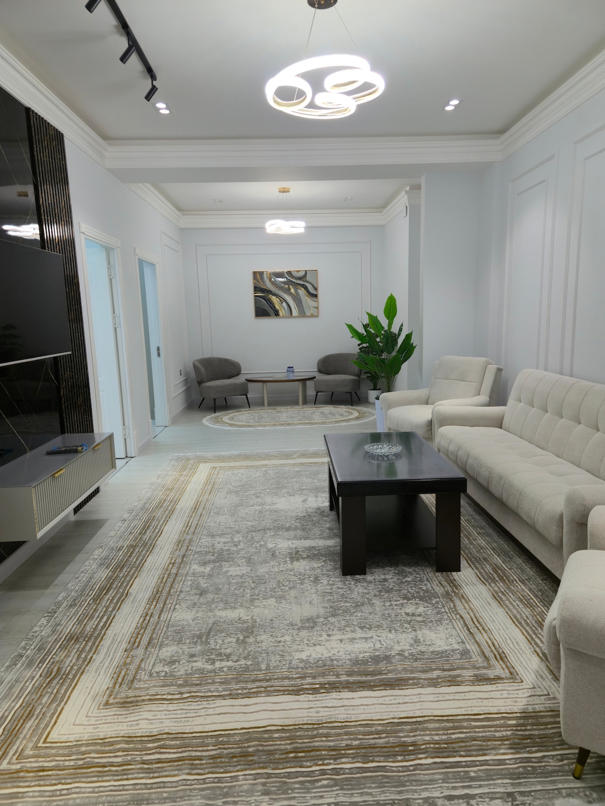 Beautiful modern renovated Canadian style unit. Comes with: - 90’ TV amazing for movie theatre experience - Full Sonos sound for amazing time while watching movie - Massive kitchen to cook - Location is 2 min away where president of Uzbekistan lives, means its a good and secure area - Down side is - its 20 min away from downtown/centre of the city - Has security camera outside of the Unit - Taxi really cheap in this area and easy to find by using Local Taxi Application on your phone