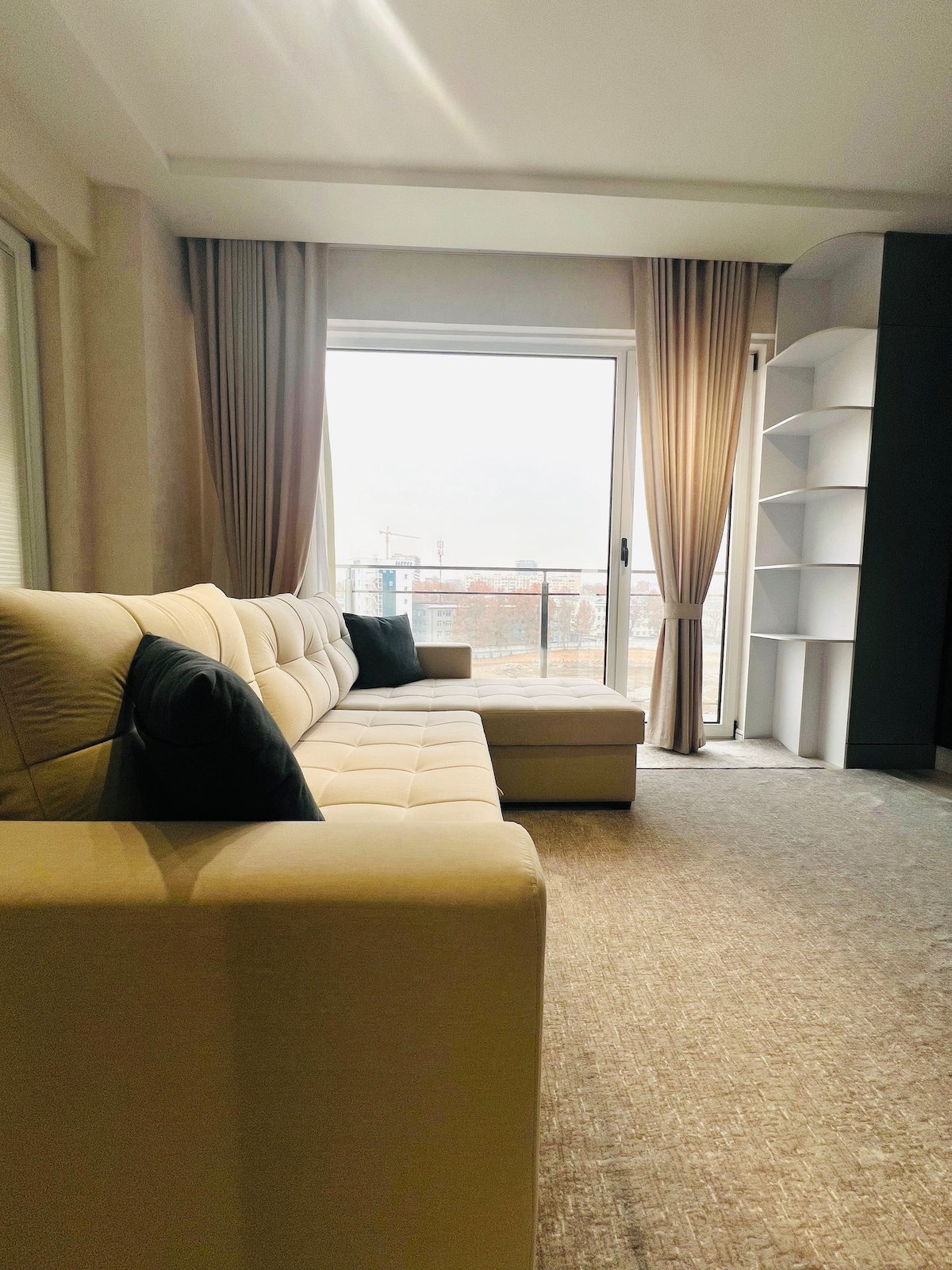 A refined retreat where style meets comfort. Floor-to-ceiling windows brighten the Scandinavian-inspired interior, with elegant furnishings and a fully equipped kitchen. Guests enjoy high-speed Wi-Fi, secure parking, a modern gym, and a rooftop terrace with stunning city views. Set in prestigious U-Tower with effortless access to the city center, it offers a truly elevated living experience.