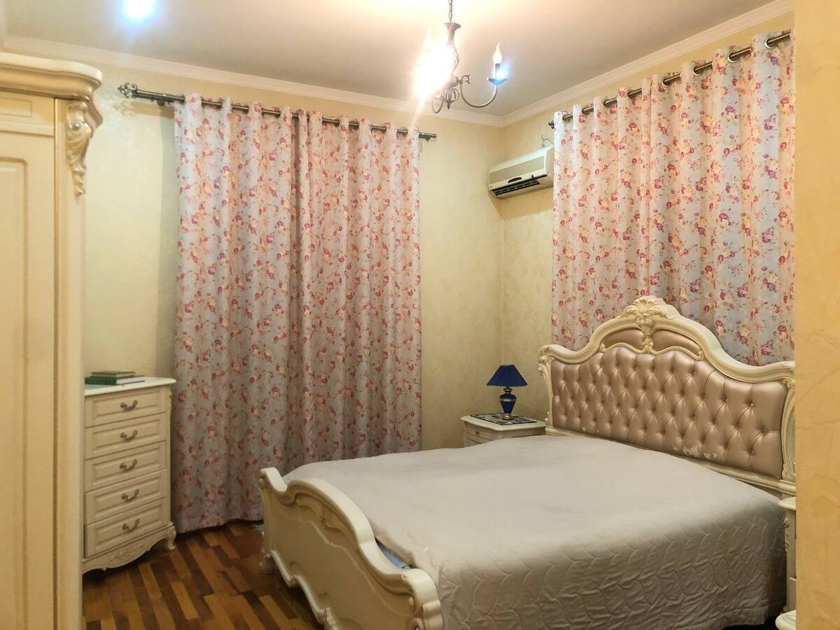 1 bedroom, 1Living room apartment in the centre of Tashkent, free private parking, close to supermarket Korzinka, there is a huge park with a biggest carting in Central Asia, a lot of Restaurants near by. Walking distance to many sightseeing's of the city.