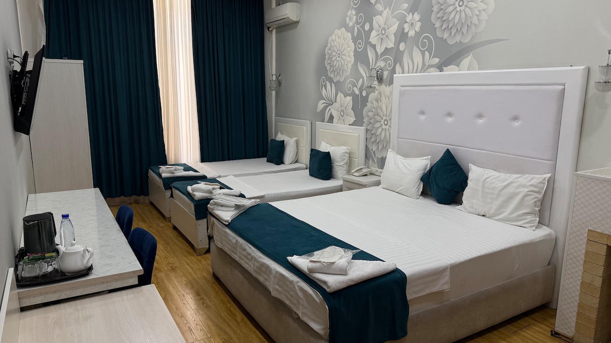 Hotel Queens 2 Уютные номера для вашего комфорта! Ищете идеальное место для отдыха? Мы предлагаем вам современные номера с комфортом и удобствами! Наши услуги: - Чистые и стильные номера - Бесплатный Wi-Fi - Питание и чайные принадлежности - Удобное расположение в центре города - Вкуснейший завтрак - Бесплатная парковка - 10 минутах от Аэропорта и от Метро Ойбек