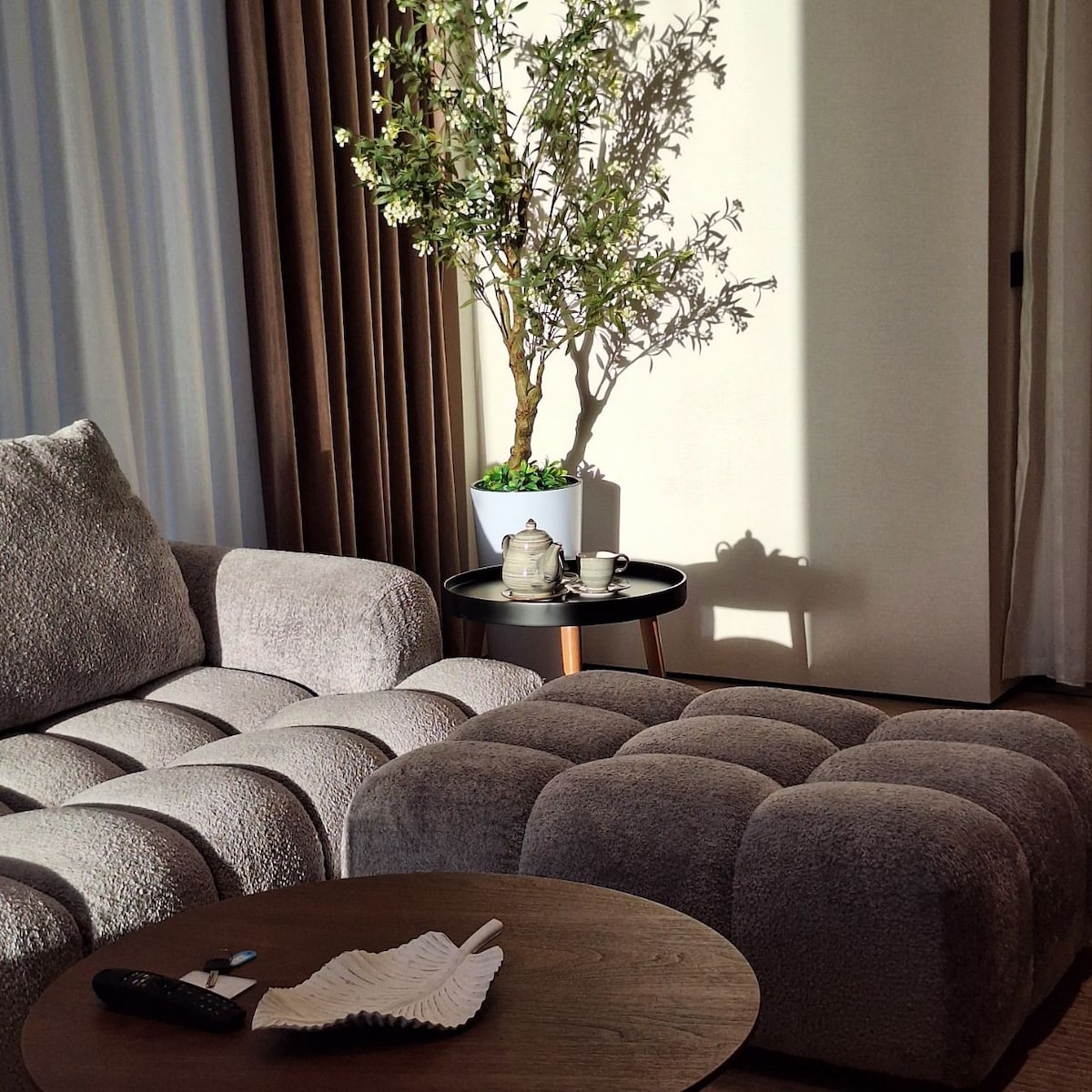 Роскошные апартаменты в NRG U-Tower — одном из лучших ЖК Ташкента. Панорамный вид на закат, уютная терраса с гирляндами и вином, дизайнерский интерьер с мрамором и деревом, мягкий свет и тишина. Идеально для отдыха и романтических вечеров. Центр города, рядом кофейни и рестораны. Уровень Luxe, комфорт 5★, стиль NRG U-Tower Premium Tashkent. В комплексе: спортзал, коворкинг, лаунж, смотровая площадка.