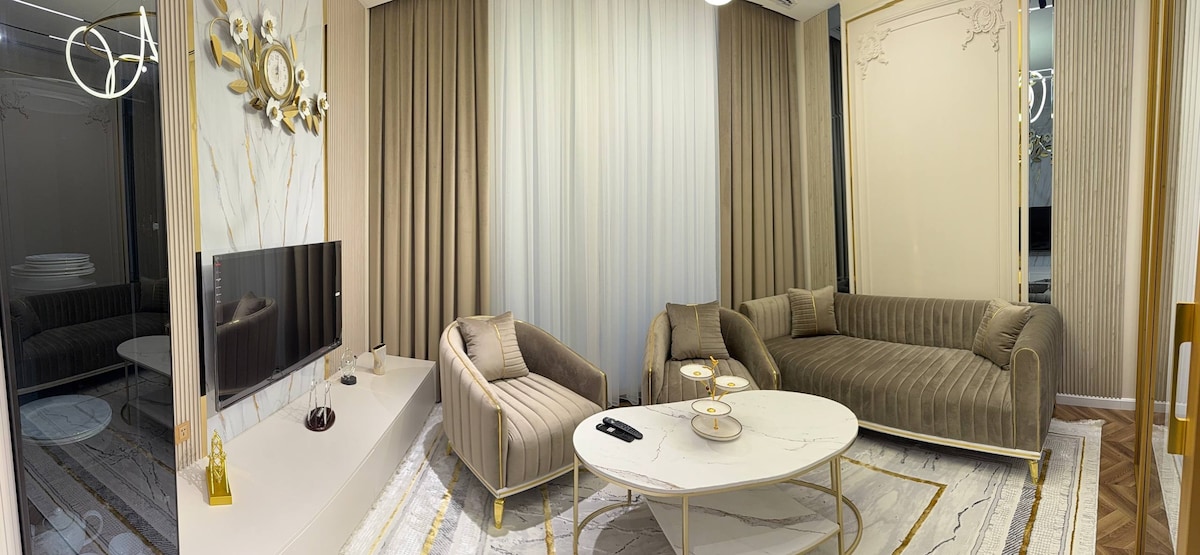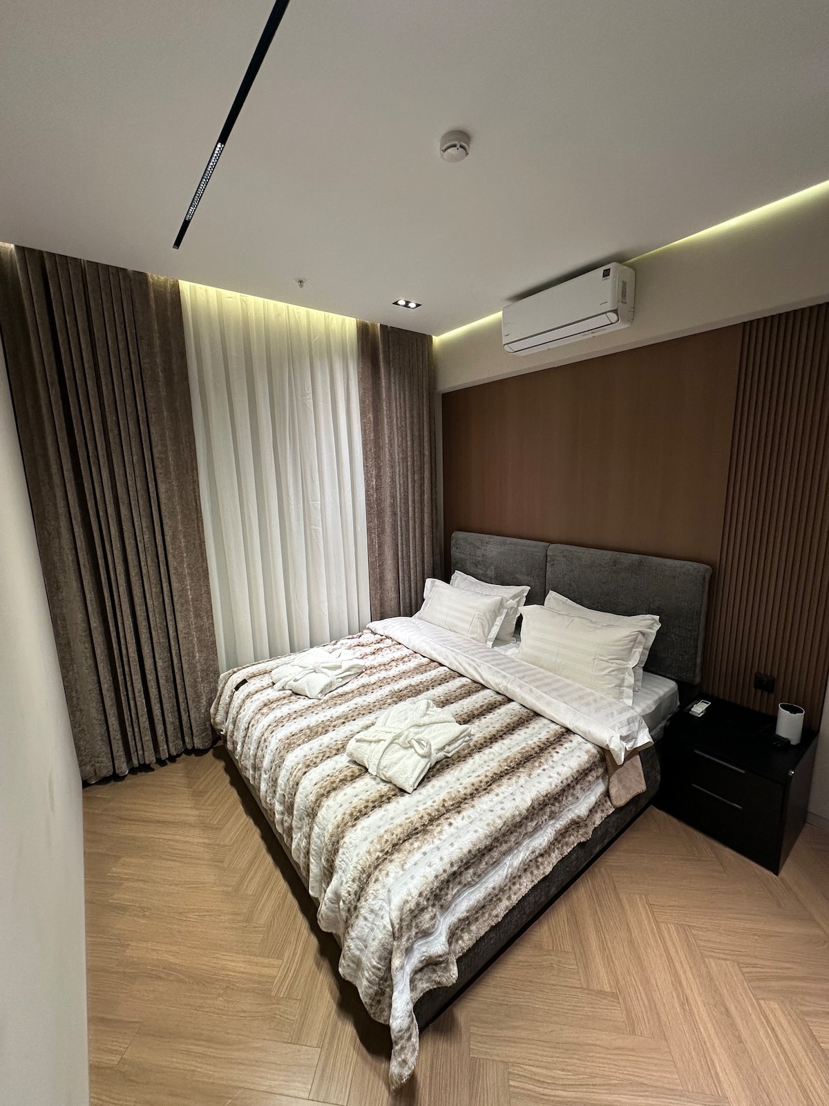 Абсолютно новые и уютные аппартаменты, для спокойного отдыха. Находится в центре Ташкента, недалеко от международного аэропорта. Самый востребованный район для иностранных гостей, так как в шаговой доступности имеются много ресторанов с различными национальным кухнями. Много мест для развлечения, рынки и прогулочные зоны, парки и т.д. В квартире имеется все необходимое, для комфортного проживания. Имеется спальня с двухместной кроватью и раскладной диван (полноценный двухместный).