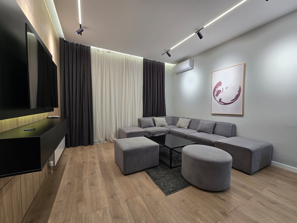 Окунитесь в атмосферу дизайнерских апартаментов премиум-класса в сердце Ташкента. Гостиная с диваном bouclé, стильной мебелью и журнальными столами из мрамора создаёт ощущение отеля 5. В квартире две спальни: мастер-спальня с большой кроватью, и вторая спальня с двумя отдельными кроватями — идеальна для семьи, друзей или коллег. Гардеробная с подсветкой, полностью оборудованная кухня, ванная в стиле boutique hotel. Идеально для гостей, которые ценят комфорт, эстетику и высокий уровень сервиса.