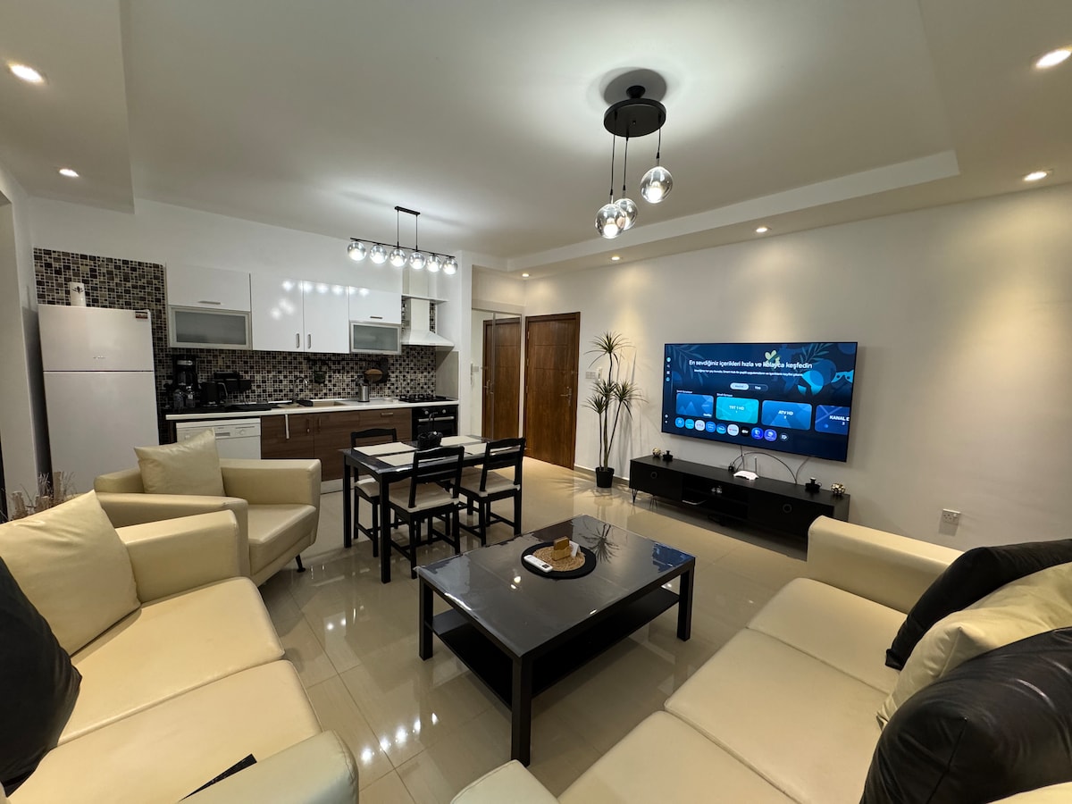 🏡 Konaklama Alanı Yeni inşa edilmiş modern 2+1 dairemiz, Girne şehir merkezinin kalbinde yer alıyor. Ferah yaşam alanları, modern mobilyalar ve şık dekorasyon ile konforlu bir konaklama sunar. 🏡 The Space Our newly built modern 2-bedroom apartment is located in the heart of Kyrenia. Spacious living areas, stylish furniture, and tasteful decoration offer a comfortable stay.