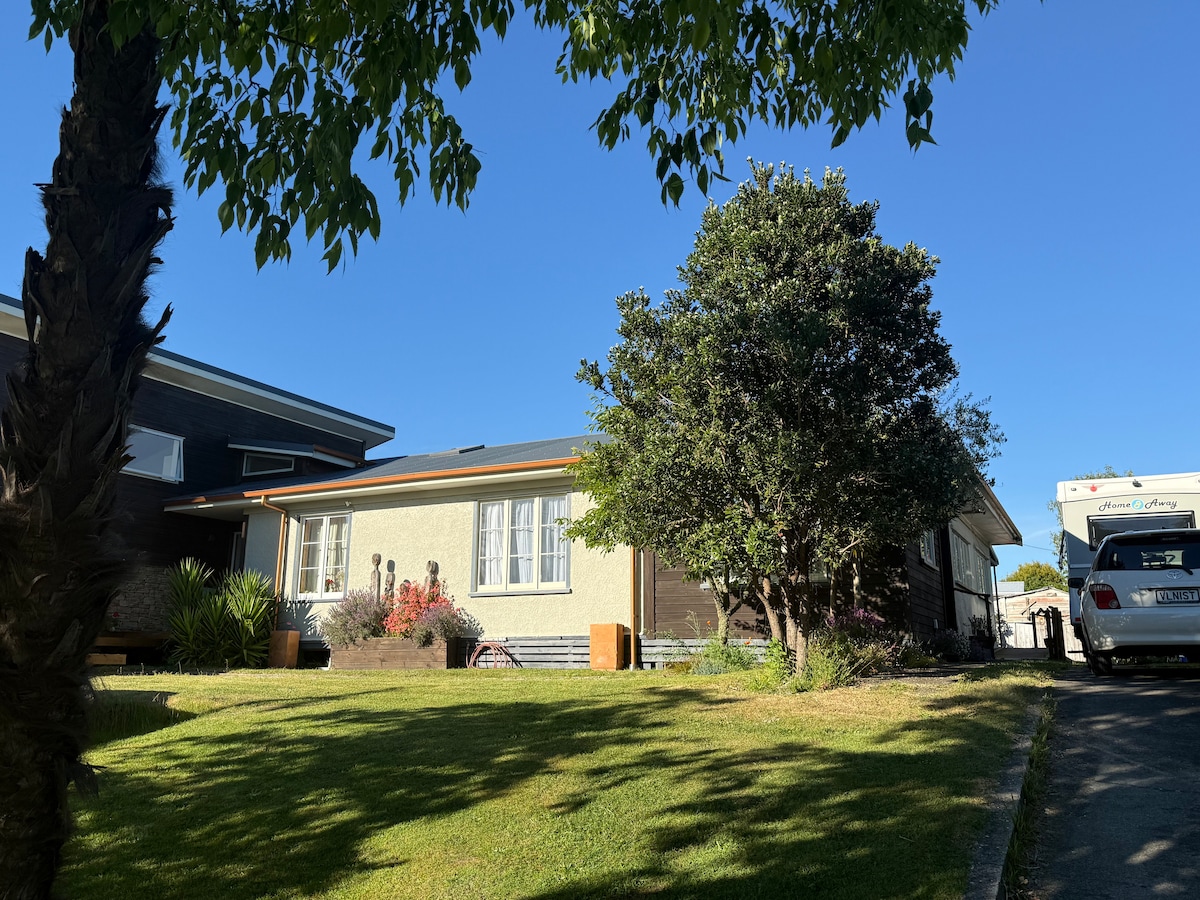This classic waterfront kiwi bach sleeps up to nine people. There is a swimming pool as well as safe swimming for kids at the sandy beach. -two sheltered covered outdoor areas and an outdoor fireplace. -fish from the rock wall on the property -plenty of parking for a boat and other vehicles -an open fire, heat pump/AC, double glazed windows, underfloor insulation. -private -walk to Mapua Village and the Wharf -family friendly