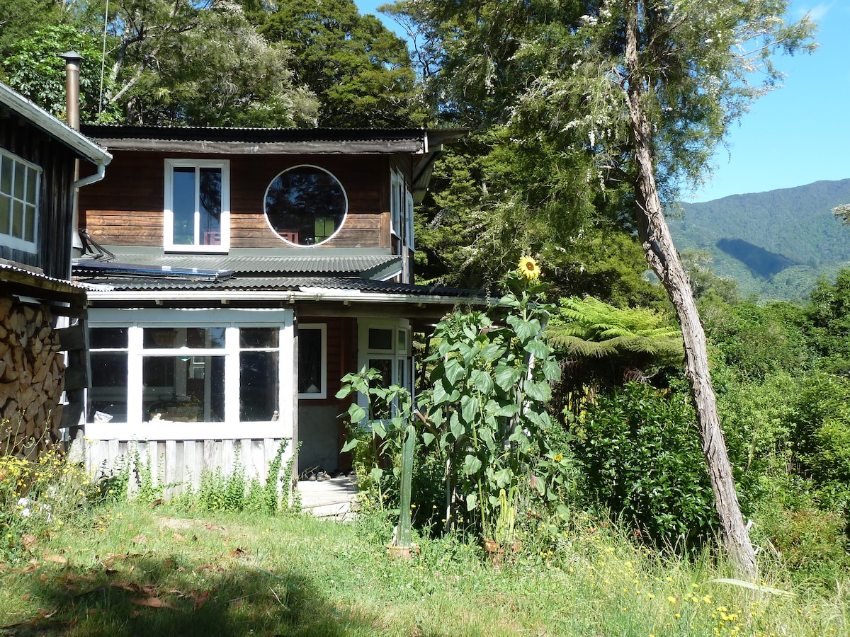We love to welcome you for a rejuvenating time in our unique hideaway in nature! The view over Tasman Bay is breathtaking! You are surrounded by lush regenerating bush with diverse birdsong and wildlive while breathing in pure air or drinking spring fed water. This is a truly relaxing place in privacy, off-grid. Enjoy cooking in the funky kitchen, an open air shower or soak in the fire bath, or some quality time in our cosy hut. All this is close to Motueka, stunning beaches, Nationalparks etc