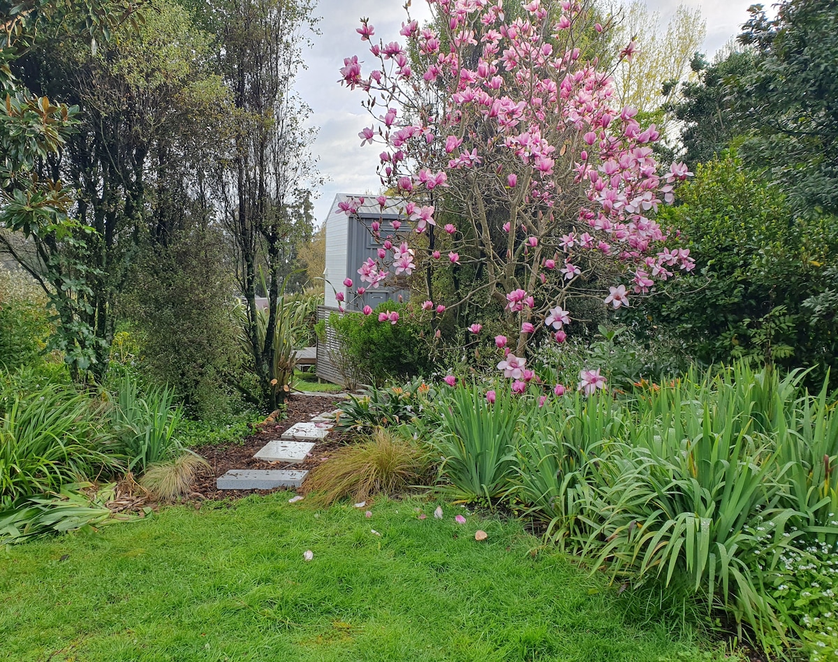 Inspired by the tiny house movement, this cottage packs a big punch. Constructed with native timbers, Plum Cottage integrates beautifully with the landscape. The cottage is nestled on our back hill amongst the plum trees and gardens. Feel free to pick some tomatoes or a juicy plum! Summer sunsets are lovely! Located on the Tahunanui hillside with views to the distant mountains. It is an easy 1.3 km walk to the beach (15 min.) -or 5 min drive. CBD is 6km away. Bus stop is 13m walk.