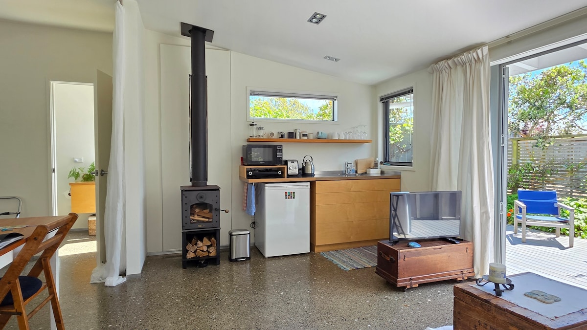 In the seaside village of Mapua, Central to Abel Tasman National Park, wineries, galleries, on the cycle trail, a 3 minute walk to Mapua Wharf cafes, galleries The Studio, Contemporary but homely, beautifully furnished, High Quality, created with love. Cosy bed, organic 100% cotton sheets. Superb tiled shower, well equipped kitchen, deck in private enclosed garden. The wood fire in winter, warms you and your soul Guests say: Classy, soulful, sanctuary A slice of heaven. Absolutely spotless.