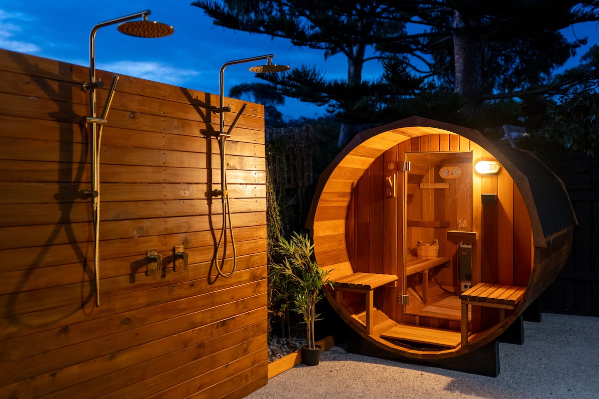 Take a breath and relax! Frederick Lane is your cosy coastal escape, made for days by the sea. Warm up in your private sauna, rinse off outdoors, and enjoy the fresh ocean air. Wander across the road to the gorgeous beach, then come back and settle into the warmth. Move your body with quality workout gear, unwind in the cosy courtyard, explore quiet trails, two adult bikes available! Inside, a spacious kitchen and dining area await, plus smart TVs in both bedrooms for chilled nights in!