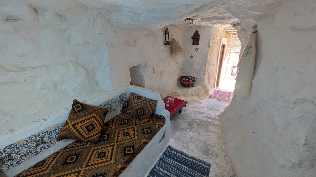 cette grotte troglodyte âgée de 2400 ans entièrement retapée et sécurisée est un véritable monument historique et un témoin vivant des vertiges des Berbères d'afrique. située au sommet du mont Douiret qui donne son nom au village, ce logement offre une expérience unique de pureté, méditation bien être et évasion. je suis sur place durant le séjour afin de concocter repas, guider les escapades en vallées et montagnes. cette expérience est non seulement unique mais très riche.
