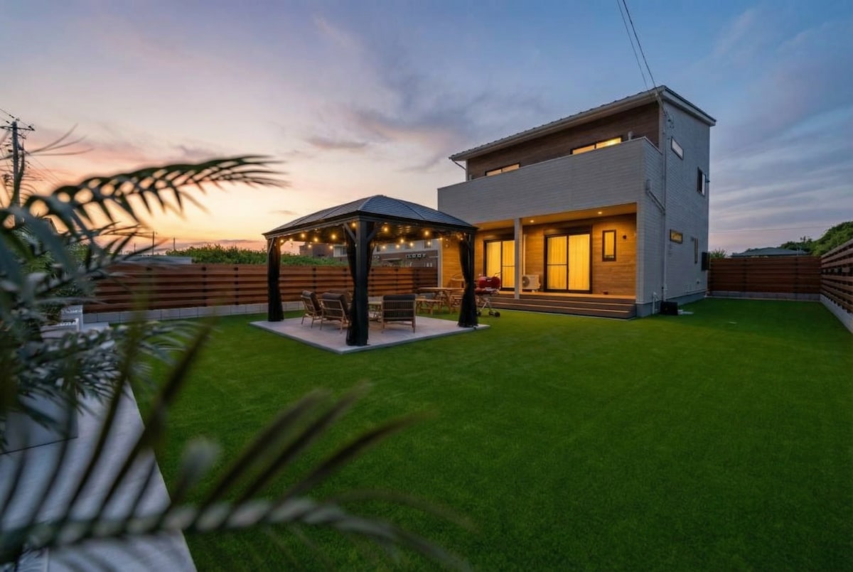 2024年7月に誕生した新築一棟貸しヴィラ ウッドデッキと広い庭: 満天の星空の下、夜風を浴びて飲むビールは格別です 屋根付きBBQ: 広い庭には屋根付きのスペースを完備。多少の雨でも天候を気にせず、親しい仲間とバーベキューをお楽しみいただけます 最高の朝時間: 少し早起きして、隣のファミリーマートで淹れたてのコーヒーを購入。海辺を散歩し、日の出を眺める贅沢なひとときをお過ごしください ♨️ 充実の周辺施設 当施設最大の魅力の一つは、徒歩3分の場所に日帰り天然温泉「太陽の里」があること。 海で冷えた体を温めたり、サウナで汗を流して旅の疲れをリフレッシュできます。 🍽️ 一宮海岸のグルメと散策 施設前の30号線を車で10分南下すると、サーフカルチャーを感じる一宮海岸通りへ。 お洒落なカフェやレストランが軒を連ね、素敵な雰囲気の中でお茶や食事を楽しめます。 ✅ ご予約が埋まっていた場合 ご希望のお日にちのご予約が埋まっている場合は、近隣にございます兄弟施設「シーガーデン」をご検討ください。ホストをクリックいただくと、関連施設をご確認いただけます。