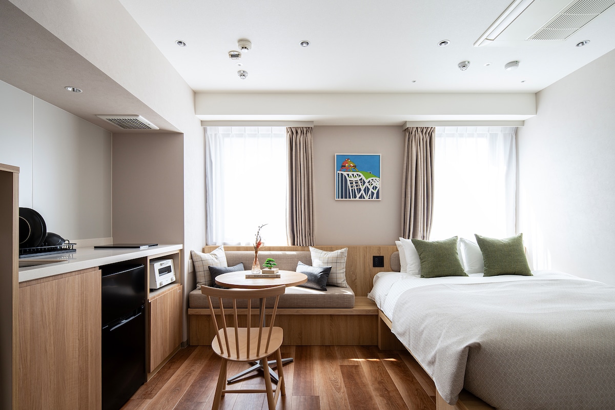 Experience the feel of a standard-sized Tokyo apartment in this superior studio for 2. Enjoy restful nights on a queen-sized bed and a functional layout ideal for remote work. Whether you're balancing work and wellness or simply unwinding, this space is a great urban sanctuary.