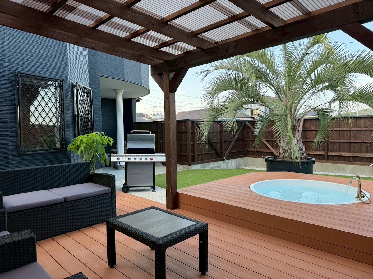 1.5 hour drive from Tokyo 1hour drive from Narita and Haneda airports Take your children for a walk on the beach Afterwards, enjoy a beer on the spacious wooden deck And of course, BBQ in the garden at night! Fresh seafood caught in the sea of Chiba and and fresh vegetables Even if it rains, you can BBQ on the wooden deck under the eaves of the roof or on the covered tile deck. The lighting in the garden allows you to play outside even at night.