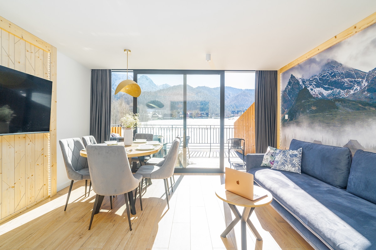 Nasz Apartament to oaza nowoczesności i komfortu, zapewniająca niezapomniane doświadczenia podczas pobytu w Białce Tatrzańskiej. Przekraczając próg apartamentu znajdą Państwo przestrzeń salonu, połączoną z funkcjonalnym aneksem kuchennym, gdzie elegancja i funkcjonalność łączą się w harmonijną całość. Przestronny salon zachęca do relaksu po intensywnym dniu, a w pełni wyposażony aneks kuchenny umożliwia przygotowanie potraw w dowolnej chwili.