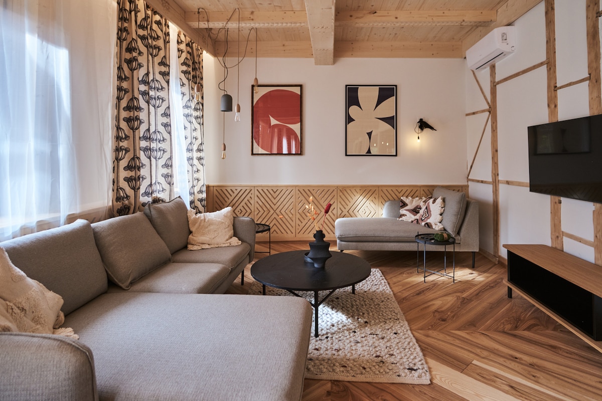 Grand Chalet to luksusowa willa o powierzchni 250 m2 w sercu Podhala z panoramicznym widokiem na Tatry. Na gości czekają: 4 klimatyzowane sypialnie, 4 łazienki, jacuzzi z widokiem, sauna, sala gier z bilardem i PS5, strefa fitness, gabinet do pracy ze światłowodem, kącik dla dzieci, kominek i całoroczny grill. Willa oferuje komfortowe zakwaterowanie dla 10 osób. Idealne miejsce na rodzinny wypoczynek, spotkania z przyjaciółmi czy workation – komfort, nowoczesność i wyjątkowy klimat w jednym.