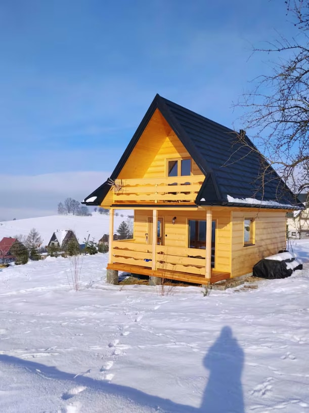 Immerse yourself in the silence of a mountain meadow with stunning Tatra views. This luxury wooden house offers 80 m² across three levels, finished to the highest standard, with spacious terraces perfect for relaxation and nature views. A private spa zone with sauna and hot tub ensures top comfort. Sauna and hot tub access available for an additional fee. Warm hot tub: PLN 150 - 2.5 hours Sauna: PLN 150 - 2.5 hours