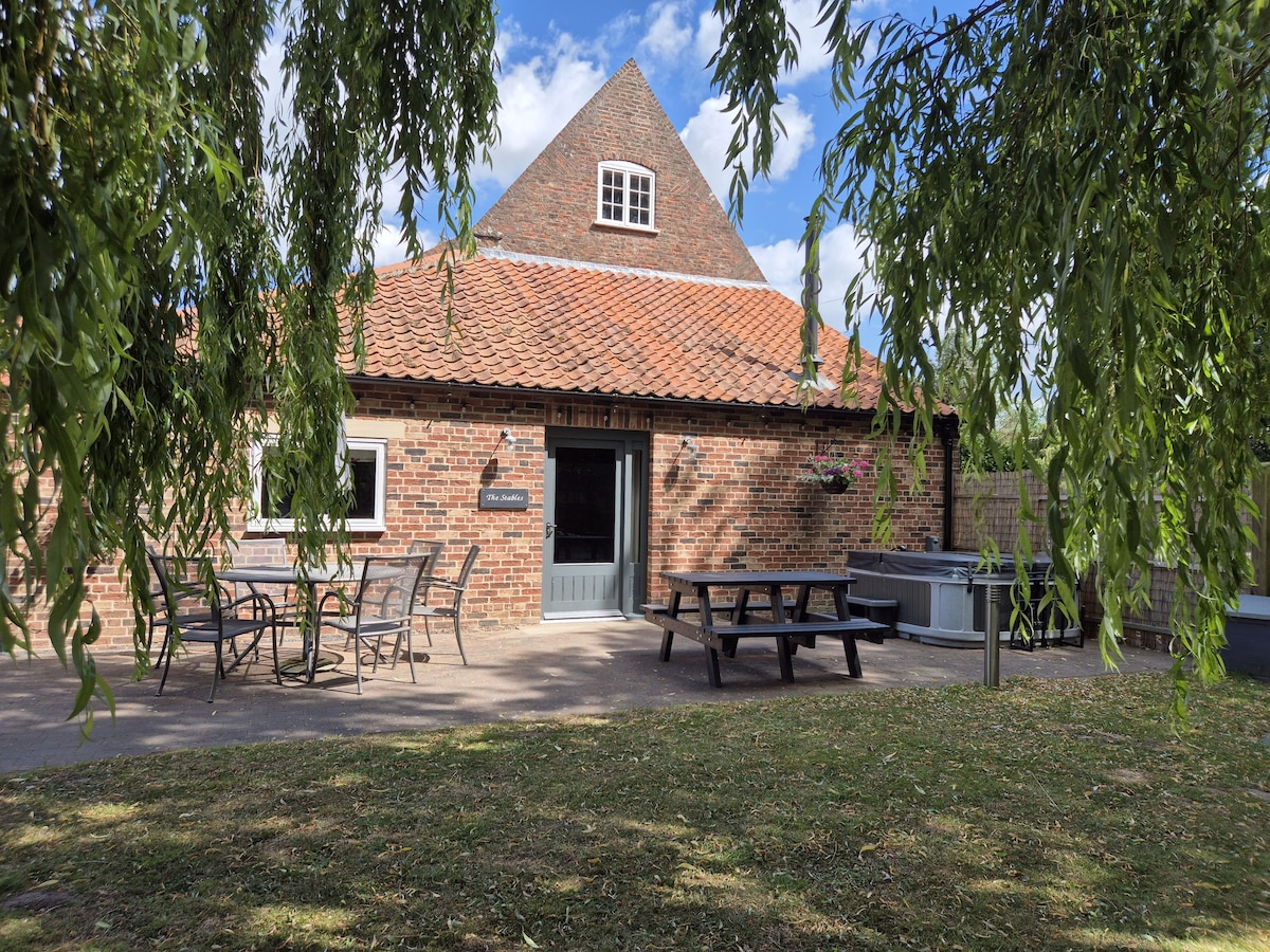 The Barn is situated in the grounds of White House Farm, on the banks of the River Witham. It's a wonderfully cosy and private barn conversion with a separate private garden which is fully enclosed ideal for Dogs. Self-contained, 2 bedrooms, newly renovated bathroom, kitchen, wood burner and 65” HD TV with Netflix and Free WiFi. Quiet and very peaceful. We also now have a pontoon on The River behind the Barn from which you can launch your paddle boards, canoes or even go wild water swimming!