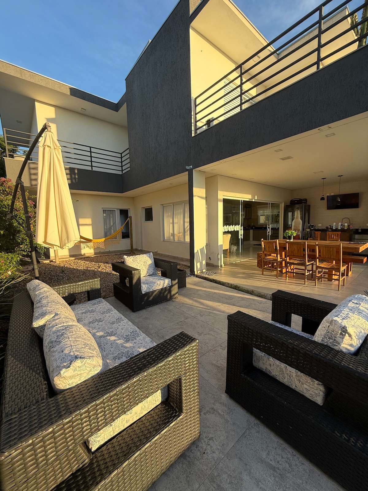 A casa possui 04 dormitórios, sala de estar , sala Jantar , 04 banheiros completos, cozinha toda equipada e Internet Vivo Fibra. Espaço gourmet com churrasqueira , forno de pizza e fogão a lenha. Piscina com hidro massagem e cascata. Um (01) quarto fica no térreo e 03 quartos que ficam na parte superior com varanda e vista panorâmica. Local tranquilo e ideal para relaxar. O condomínio possui quadra de tênis, campo de futebol, salão de jogos, trilha de caminhada e segurança 24 Horas.