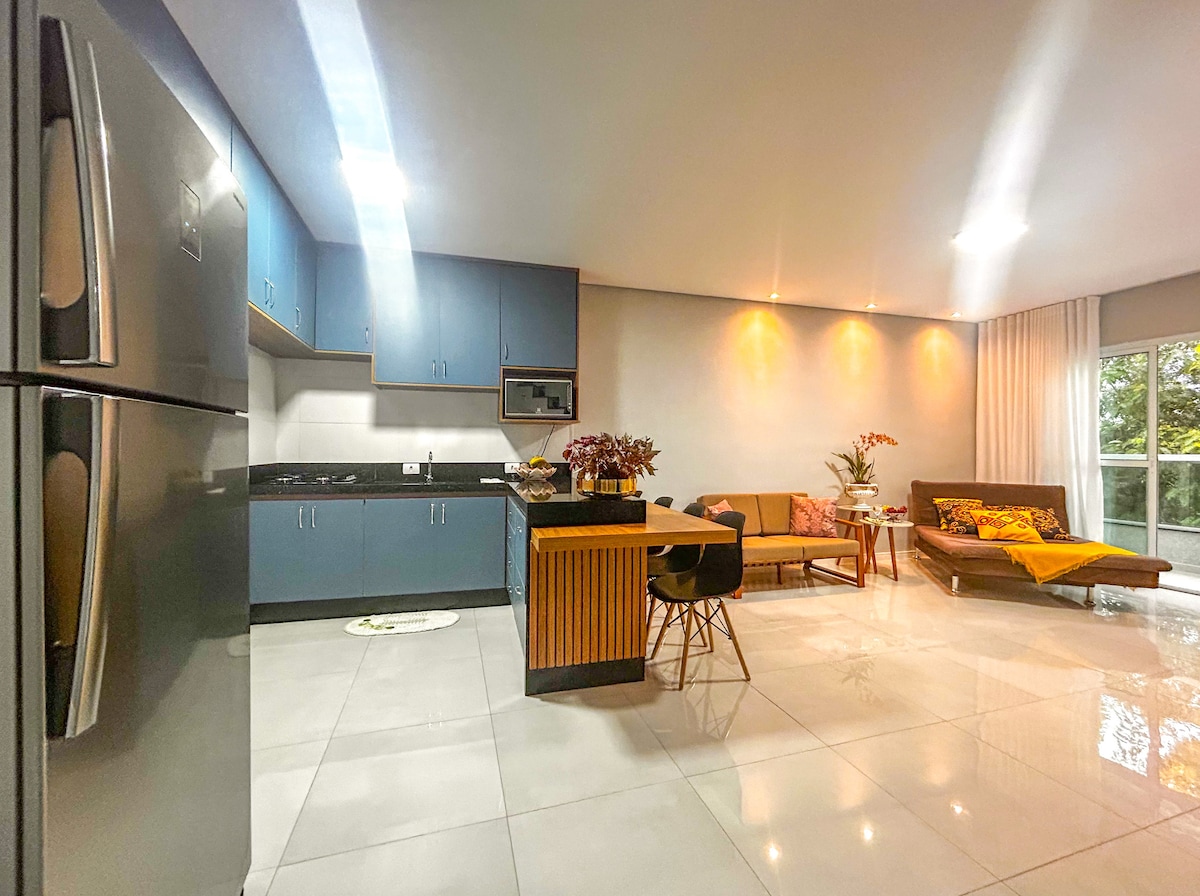 Localização magnífica: você estará a apenas cerca de 500m da rodovia SP-127, em frente o fórum de Tatuí, e apenas 8 minutos do centro da cidade. 2 quartos confortáveis, sala com TV Smart, cozinha equipada, a poucos passos de supermercados e farmácias. O condomínio possui parque infantil, portaria e mini mercado 24 horas. Algumas distâncias úteis: 16 km (15min) Associação Torre de Vigia (Betel) 18 km Castelo Park Aquático Cesário Lange 4,3 km Conservatório de Tatuí 19 km Balonismo Boituva