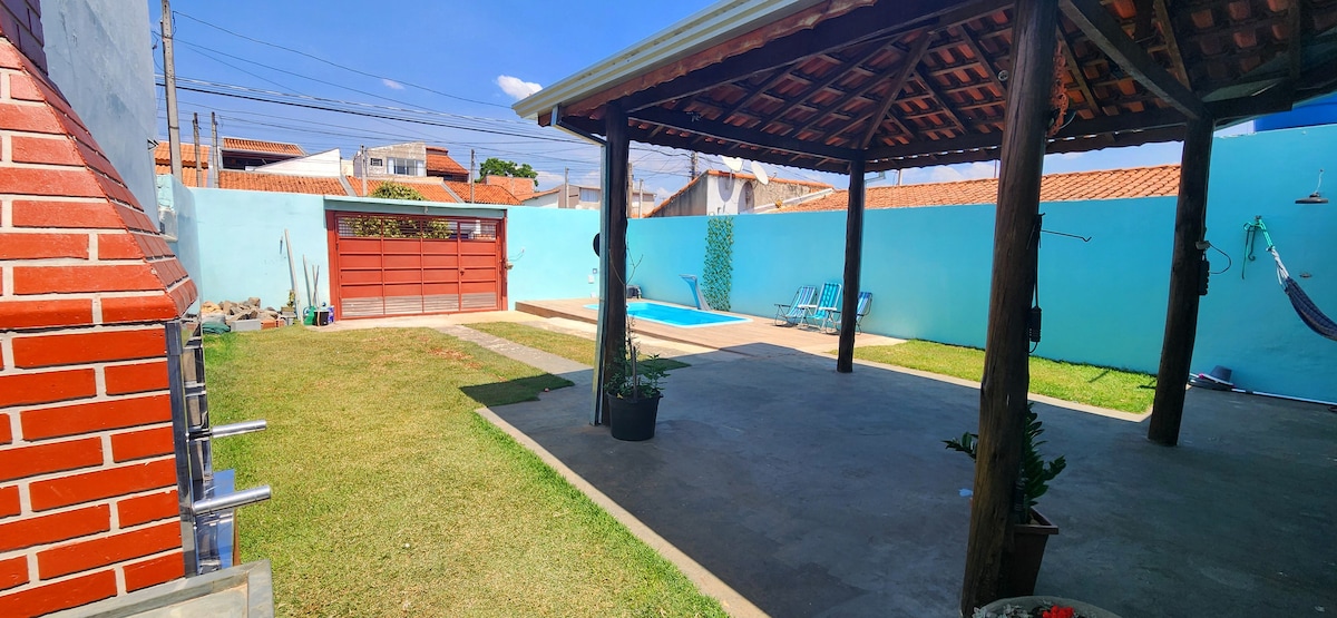 Bem-vinda à sua casa de férias em Tatuí! Desfrute de momentos inesquecíveis com sua família ou amigos em uma casa completa: piscina rasa com hidro e LED, churrasqueira ao lado da cozinha, bairro tranquilo e de fácil acesso para Boituva, Sorocaba e Cesário Lange. Estacione com tranquilidade e sinta-se em casa.” Acessibilidade: O espaço conta com acesso para pessoas com deficiência, oferecendo rampa de acesso e ambientes sem degraus.