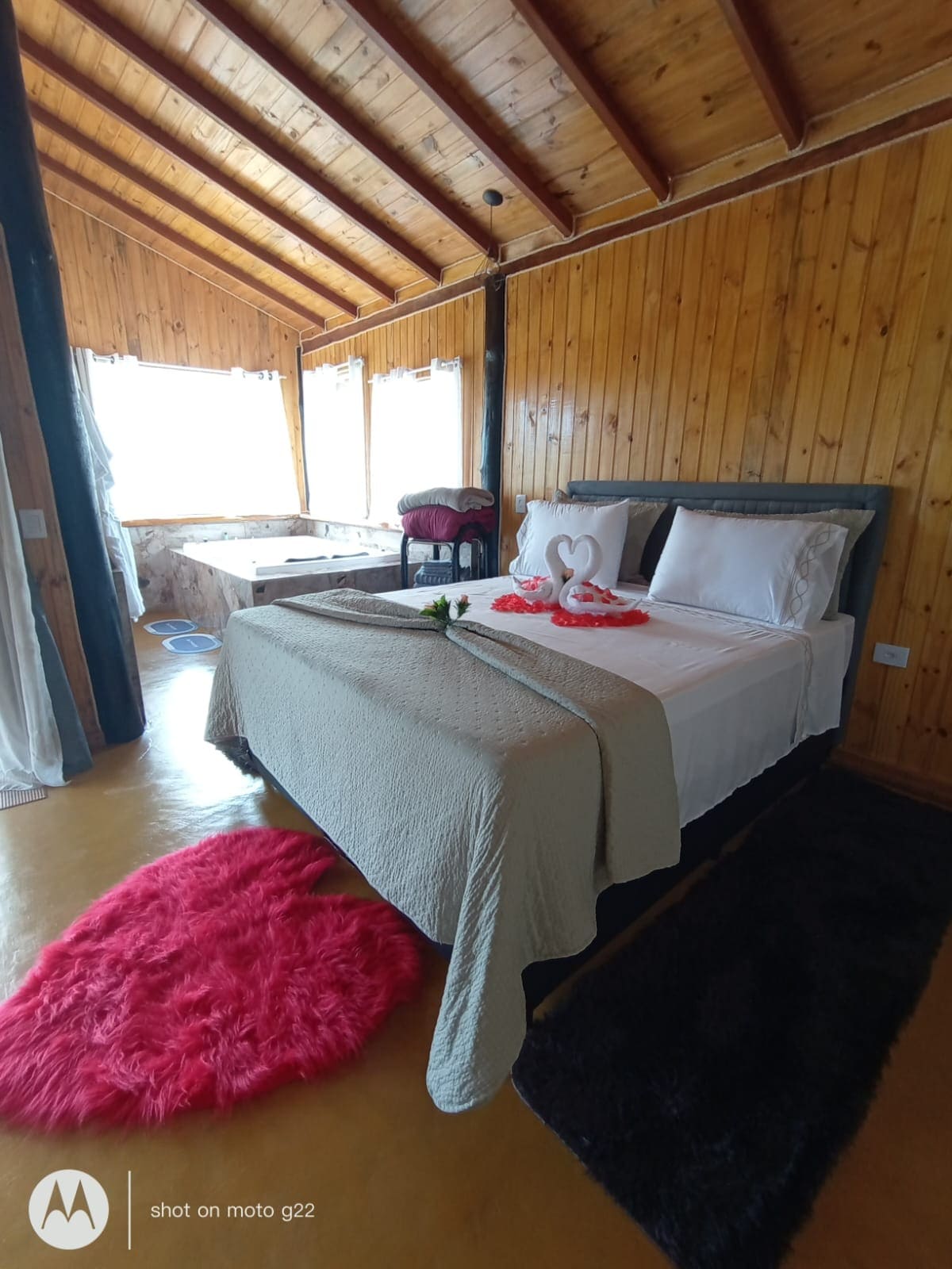 Chalé muito aconchegante perfeito para curtir a dois! Deliciosa banheira de hidromassagem dupla no quarto e lareira. Entre as comodidades estão Tv de 40 pol com canais a cabo, iluminação especial e varanda externa com vista para o jardim. O espaço possui piscina, campo de futebol, lagos de pesca esportiva, pista de caminhada, quiosque com churrasqueira e cozinha além de uma ampla área verde com muita paz e natureza!